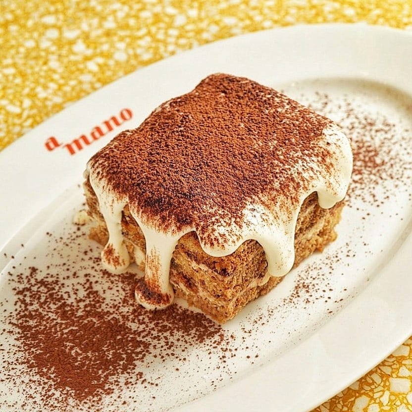 Expect a rich, dense tiramisu at a mano, made with Passalacqua coffee and mascarpone, then topped with cocoa. It’s large enough to share—if you’re willing.
