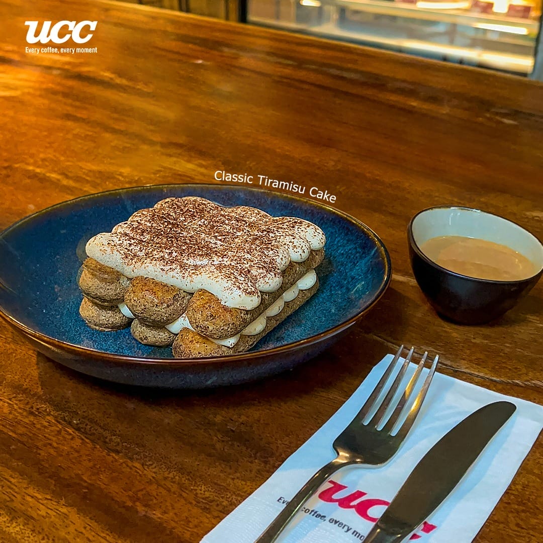 Three variations of tiramisu—classic, chocolate, and matcha—are offered at UCC Mentoré, each complementing their signature brewed drinks nicely.
