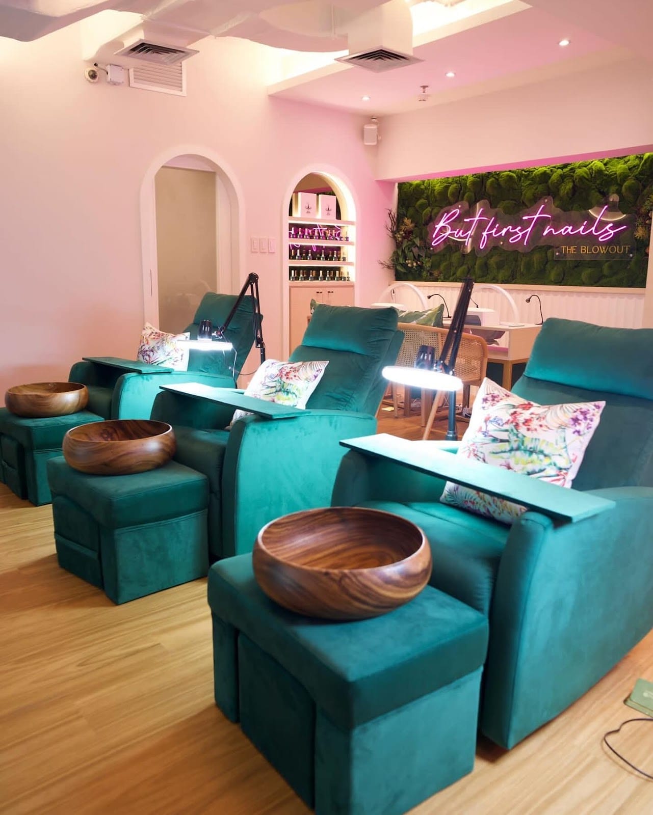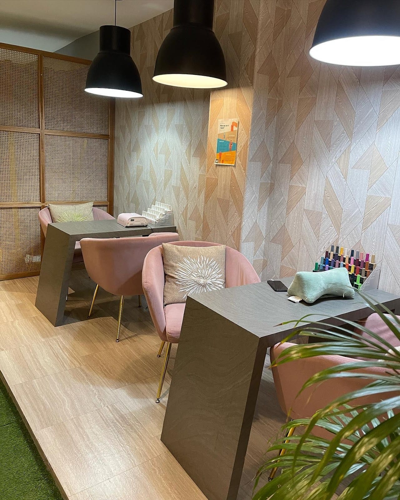 For a more nature-inspired setting, Nail Tropics Oasis blends wood accents, green décor, and soft lighting. The salon is known for attentive service, with several technicians often working together to provide smooth, efficient care. Guests often mention the extra touches, like back massages during treatments.